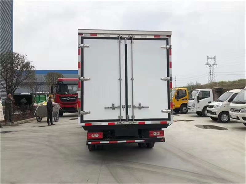 (2)廂板材質(zhì):內(nèi)外壁板選用國內(nèi)優(yōu)質(zhì)玻璃鋼(不吸光、隔熱性好、硬度強(qiáng)、抗氧化);中間保溫層為XPS擠塑聚笨板;廂體厚度8CM。地板采用鋁花紋板,門邊條采用迷宮式橡膠密封條。